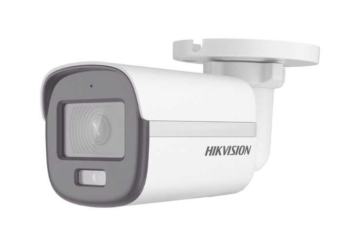 Esta cámara **TURBOHD (HIKVISION)** ofrece una resolución **Full HD (2MP - 1080p)** y tecnología **ColorVu**, proporcionando **imágenes a color nítidas 24/7** con una iluminación mínima de 0.001 lux y **luz blanca de 20 metros**. Cuenta con una lente fija de **2.8 mm (98° de apertura)**, carcasa metálica **IP67 para exterior** y es compatible con **4 tecnologías** (TVI-AHD-CVI-CVBS).